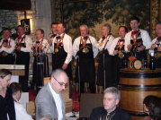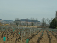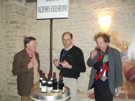 Den 5 - Côte de Beaune - Beaune couleurs vins, Terroirs de Corton aj. Tato oblast, jak název napovídá, se rozkládá kolem středověkého města Beaune a pochází z ní bájná vína z viničních tratí Le Montrachet, Corton-Charlemagne, Chevalier-Montrachet, Bâtard-Montrachet, Bienvenues-Bâtard-Montrachet, Criots-Bâtard-Montrachet - všechna vína jsou bílá a nesou označení grands crus - plus jediné červené grand cru Corton (viz foto zalesněného kopce Corton vpravo). Dále se zde nachází celá řada vesnic, jejichž jména jsou skutečnými pojmy (a jejich vína samozřejmě za přiměřené ceny): Pommard, Volnay, Puligny-Montrachet, Meursault, ale také méně známé vinařské obce, kde poměr kvalita:cena hraje významnou roli. Jmenujme např. Monthelie, Auxey-Duresses, Saint-Aubin, Saint-Romain a Santenay, kde se dají najít skutečné skvosty i bez tlusté peněženky. Na Château Philippe Le Hardi v Santenay se konala přehlídka vín nazvaná Des Maranges au Montrachet en Passant par Santenay & Saint-Aubin, kde byl již v průběhu dopoledne docela nátřesk. Popojeli jsme tedy do nedaleké obce Volnay na ochutnávku Élégance des Volnay, kde se v čase oběda nacházelo relativně málo lidstva. Bylo možné prohodit pár slov i s vinaři, jakým je např. světově proslulý Dominique Lafon (viz foto vlevo) z exemplárního biodynamického vinařství Les Comtes Lafon. Jeho Volnays Santenots-du-Milieu, Clos des Chênes a Champans premiers crus byla skutečně úchvatná vína. Den jsme ukončili na Château de Pommard (Pommard rime avec art), kde svá vína prezentovali také naši staří dobří známí Henri Vaudoisey, Michel Arcelin a Jean Michelot (viz foto). Den 6 - Salon de Jeunes Talents, Trinquée de Meursault a Banée de Meursault Poslední den a sil ubývá... Dopolední návštěva s degustacemi a obědem patřila mladým talentům, kteří po dva dny vystavovali v Château de Savigny. Tuto prezentaci máme obzvlášť rádi, neboť nám umožní poznat vína nové generace vinařů s mnoha premiers a grands crus ze všech oblastí Burgundska a relativně bez davů a mačkanic. První patro zámku se na tyto dny promění v honosnou restauraci, kde se lze posilnit na poslední štaci Trinquée de Meursault, která se tradičně koná v cuveries neboli kvasírnách a barikárnách vinařství Jacques Prieur tamtéž. Vína apelace Meursault jsou z velké většiny bílá; malé procento (okolo 3 % z celkové produkce) červených vín v této obci sice existuje, která se dávají do oběhu pod apelacemi Blagny, Blagny-Côte de Beaune, Blagny Premier Cru, Côte de Beaune-Villages, Meursault-Côte de Beaune, Meursault, Meursault Premier Cru a Volnay-Santenots (vinice Les Santenots se totiž rozkládají v katastru obce Meursault). Konec této degustace je odpískán v 17 hodin, aby měli účastníci dostatek času na to dát se do gala a vyrazit na poslední dostaveníčko burgundských dnů - slavnostní večeři Banée de Meursault na stejnojmenném zámku, která se letos konala již pojednadvacáté. Ačkoliv vstupenky stojí 145 Eur (bez vína, neboť vína dle zvyku přinesou samotní vinaři, kteří rovněž sedí v sále), cuverie du château je naplněná k prasknutí pěti sty stolovníky. Máme štěstí, personál Château de Meursault naši skupinku usazuje vedle svého rezervovaného stolu, kde nás jejich enolog Jean-Claude Mitanchey zásobuje jedněmi z nejlepších vín této apelace. Fabrice Bugaud ze Chalonu-sur-Saône pro tuto sešlost sestavil následující menu: Caponata de Homard de Nouvelle Écosse, Turbot Rôti avec Pommes Confites et Sauce au Cidre, Canette Sauvageonne a Filet de Boeuf Charolais Façon Vigneronne. Končilo se samozřejmě pestrou paletou sýrů a dezertů, s cukrovím petites mignardises ke kávě na závěr. To vše pod dohledem mistra kuchaře Jérôma Brochota, laureáta letošní ceny Prix de la Banée de Meursault 2008, která mu při hostině byla předána. A s písničkou Et je suis fier d'être un Bourguignon... končí zase jedno velkolepé bienále, jakým bezpochyby je akce Les Grands Jours de Bourgogne a nezbývá než se těšit na rok 2010!