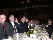 Mâconnais produkuje lehčí červená vína, například Mâcon a Mâcon-Villages, a typicky olejnatá bílá burgundská apelací Saint-Véran, Pouilly-Vinzelles, Pouilly-Loché, Viré-Clessé, avšak nejznámější (a také nejdražší) značka, zejména v zahraničí, musí být zajisté Pouilly-Fuissé, díky její popularizi v USA. Oblast Mâconnais se rozkládá v okolí města Mâcon, jak nám ostatně její název napovídá, avšak účastníci Velkých burgundských dnů nemuseli jezdit až do Mâconu, nýbrž stačilo zaregistrovat se na prezentaci Symphonie Mâconnaise, která se konala v kongresovém paláci v Beaune. Návštěvníci zde měli také možnost ochutnat vína z ostatního Burgundska (L'autre Bourgogne), pod čímž se skrývaly např. Crémanty de Bourgogne a vína z Hautes-Côtes de Nuits a Hautes-Côtes de Beaune. Poprvé se zde představila vína z apelací Aloxe-Corton, Chorey-lès-Beaune, Ladoix-Serrigny, Pernand-Vergeleses a Savigny-lès-Beaune, a to v prezentaci s názvem Quinté sens (pět vinařských obcí = pět smyslů), a tak bylo možné pod jednou střechou, kde vystavovalo téměř tři sta vinařů, ochutnat celkem tisíc pět set vín! Den 4 - Côte Chalonnaise Côte Chalonnaise sestává z malých apelací jako jsou Rully, Mercurey, Givry, Montagny, Buxy, Bouzeron aj., které leží západně od města Chalon-sur-Saône a pochází odtud jak červená tak bílá vína velmi slušné kvality a za příznivé ceny. Na zámečku Garnerot v Mercurey se konaly dvě prezentace vín z této oblasti nazvané Au coeur de la Bourgogne: jedna ve sklepeních a druhá v patře. V přilehlé budově rovněž perfektně fungovalo dobře vybavené Press Centrum. Čtyřchodový oběd byl zorganizován v Salle du Val d'Or v sousedství radnice, za který byl šéfkuchař odměněn velkým aplausem. Večer jsme se oblékli do tenue de soirée a odjeli na věhlasný zámek a sídlo rytířů Chevaliers du Tastevin - Clos de Vougeot - kde pozvané novináře čekala akce nazvaná Grandes Maisons & Grands Crus, což byla degustace dvaceti bílých a dvaceti červených grands crus, kterou jsme měli možnost absolvovat jako slepou i odkrytou. Zvolili jsme si první variantu a pak náležitě porovnali výsledky s našimi poznámkami. Po degustaci a předkrmech Bouchées d'Escargots, Ravioles de Homard, Confit de Foie de Volaille Truffé a Terrine de Caille en Gelée de Montrachet za doprovodu Chablis Les Preuses 2006 z vinařství Jean-Marc Brocard jsme se přemístili do prvního patra ke stolům, kde nás čekal zbytek této báječné hostiny. Podávala se Tournedos de Veau de Mer Rossini se skvělým Chevalier Montrachet 1998 od Clauda Boucharda (père et fils), následovaly Mignons d'Agneau s Bonnes Mares 1990 Maison Joseph Drouhin a pestrá paleta regionálních sýrů a Chambe rtin 1994 Alberta Bichota.