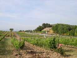 The icing on the cake was our trip to the so-called "state-of-the-art" winery, Jean León in El Pla del Penedès, founded in 1963 by Jean León, whose real name was Ceferino Carrión, who at the age of 19 left Spain, to seek his fortune in Paris, New York and finally in Hollywood where, along with the young actor James Dean, he founded the restaurant La Scala in Beverley Hills. At the beginning of the 60s Jean León visited the Penedès region along with his consultant (at the time the Catalan tongue was banned by General Franco), in order to find the best sites to plant vines - Pagos Jean León.  On 150 hectares of land the planted varieties such as Cabernet Sauvignon, Cabernet Franc, Merlot and Chardonnay (sazenice were obtained from the very best winemakers in the very best sites:  Lafite-Rothchild, La Lagune a Corton Charlemagne), in order that wines from these international grape varieties could be offered in his restaurant alongside the best sounding Bordeaux châteaux.  This pioneering instinct aroused the interest of the young Miguel Torres, freshly new graduate from the enological faculty of Montpellier.  Their subsequent friendship lasted up to the death of Jean León, who, diagnosed with a terminal illness, decided to spend the final two years of his life on his yacht, selling his winery to the family firm of Miguel Torres - both having been the first pioneers to plant internastional varieties in Penedes.  The Restaurant La Scala is now run by Jean León's daughter, who still offers Catalan wines of this prestige name. Torre del Veguer The commune of Sant-Pere de Ribes, in which the chateau of this name can be found, lies a 10-minute taxi ride from the railway station in Vilanova. Here Marcel Pérez Pago the director was awaiting our visit. Alongside him was his busines partner Mathias Poniatowski (whose uncle, Prince Poniatowski, is the owner of the famous winery in Vouvray in the Loire valley).