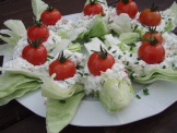 Přísady (rozpočet pro 4 osoby) : 500 g listového těsta, oříšek másla a lžíce mouky, 4 rajčata, vinný dressink (viz níže), 250 g kozího sýra, nasekané čerstvé bylinky (směs petrželky, bazalky, majoránky, tymiánu, šalvěje, pažitky, kerblíku, estragonu, máty aj.) Dresink: Do lžíce francouzské hořčice (Dijon, Poupon nebo Maille) přidáme 1 dl bílého vína (nejlépe odrůdy Sauvignon) a lžíci balzámového octa. Dále přimícháme 3 lžíce olivového oleje, špetku soli a pepře, případně můžeme ochutit rozmačkaným stroužkem česneku, a vše dobře zamícháme. [Tip: Připravte si větší zásobu dresinku do sklenice od zavařeniny se šroubovacím víčkem a uschovejte v ledničce. Dle potřeby pak dresink jednoduše protřepte, použijte potřebné množství (lze také použít na jakýkoliv salát, avokádo, artyčoky nebo chřest) a zbytek zase uložte do chladu.] Postup přípravy: Formu na koláč nebo pizzu vymažeme máslem a vysypeme moukou. Listové těsto rozválíme, vyplníme jím dno formy a pečeme "naslepo" v dobře vyhřáté troubě asi 10 minut. Mezitím si připravíme dresink, ve kterém marinujeme na plátky nakrájená rajčata. Na zpola upečené těsto klademe rajčata i s dresinkem, posekané bylinky a nakonec vše ozdobíme sýrem. Koláč necháme zapéct dozlatova až bude sýr bublat a podáváme jej jako teplý předkrm nebo s bramborem pečeným ve slupce a zelenými salátovými listy.