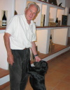 Městečko Minerve, které dává název vinařskému regionu Minervois, je poněkud jiné. Nachází se na skále nad soutěskou říčky Cesse a je součástí "podhradí" bývalé pevnosti, zničené po dlouhém obléhání v roce 1210, z které dnes zbyla pouze jedna věž, prekérně se naklánějící nad domky podél hlavní ulice vedoucí z města. Silnice jsou širší, ačkoliv přístup jiným než místním vozidlům přes padací most není dovolen. V reprezentační prodejně vinařského družstva Les Crus du Haut Minervois - Les Trois Blasons, jehož sklep s degustační místností jsou vestavěné do bývalých střílen hradu Minerve nám sklepmistr Georges (na snímku) představil pestrý sortiment tohoto družstva včetně vynikajícího fortifikovaného Muškátu.