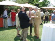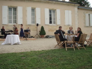 The following evening we transported to Château Fourcas-Hosten (www.chateaufourcashosten.com), a property of 47 hectares up the road in the centre of the village of Listrac. Along with a further three châteaux (Fourcas-Dupré, Fonréaud a Lestage) this estate was recently purchased by the brothers Renaud and Laurent Momméja, members of the Hermès fashion empire. Again a jazz band played on the terrace - luckily the expected rain held off - champagne flowed freely and oysters and a great variety of amuses bouches awaited us, which luckily served as a starter. Late we moved into the marquee for the main course and dessert. Laurent Momméja making a valedictory speech in reply to the former owner's about giving his daughter away to not one but two bridegrooms, moved among the gu ests to ask their opinions on the past vintages which were available on the tables. They aim to maintain the family feeling of a typical château unlike the banks and insurance giants who have moved into wine in a big way as family concerns buckle under the weight of crippling death duties and inheritance taxes.