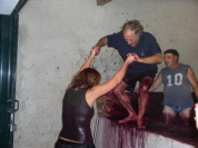 V Portugalsku berou PR tak seriózně, že se o hosty vinařství bude po dobu jejich návštěvy starat sám majitel (popř. jeho top management), který se osobně věnuje celé skupině po celou dobu, včetně exkurze do vinohradů, návštěvy sklepního hospodářství a výrobních hal a laboratoří-degustačních místností, kde se ochutná zpravidla celý sortiment vín, poté s nimi zasedne ke stolu buď k dlouhému obědu či večeři, při které nechybí ani ceremoniál otevírání starých vintage portských rozehřátými kleštěmi a nakonec každému účastníkovi předá dárek v podobě jednoho či dvou lahví svého nejlepšího vína a zpravidla ještě nějakou pěknou knihu o portském. A navíc to vše v průběhu vinobraní, kdy si mnohdy všichni ještě společně zašlapou hrozny na ročníkové portské a zaskotačí si v rytmu hudby v žulových lagares (ve firmě Rozès se ředitel António Saraiva v sobotu večer v průběhu večeře vzdálil na hodinu ze svatby svého syna, aby se s naší skupinkou z České republiky mohl osobně přivítat!). Stejně jako všude jinde na Douru, i v hospodářství Quinta do Crasto probíhalo vinobraní. Majitel Tomás Roquette nás vzal na exkurzi do vinohradu, kde jeho brigádníci - roga - právě sklízeli hrozny odrůdy Touriga Franca. Spolu s australským "létajícím vinařem" Dominikem Morrisem, následníkem Davida Baverstocka, pak pečlivě hrozny třídí na běžícím páse. Quinta do Crasto se vyznačuje kromě premium značek portských vín také významnou produkcí tzv. vín stolních (což v Portugalsku znamená vín nedolihovaných). Jejich vína z vinic osázených téměř 100 let starými keři, jako jsou Vinha Maria Teresa a Vinha na Ponte jsou legendární. Na konci polní cesty, která se náhle změní v tzv. "kočičí hlavy" se nachází Quinta do Bom Retiro, což v angličtině znamená "good retreat" a česky se asi nejlépe přeloží jako "dobrá pohoda". Také zde právě probíhalo vinobraní, ale generální ředitel věhlasného podniku Porto Ramos-Pinto a přímý potomek zakladatele Adriana Ramose-Pinta - João Nicolau de Almeida, jeho PR manažerka Rita Martins a Freddie Grimwood, kanadský žurnalista britského původu žijící v Portugalsku, na nás čekali na zahradě pod pergolou s tuctem vychlazených lahví piva značky Sagres a pozvali nás do bazénu. A to bylo slovo do pranice, které nám věštilo, že se zde nebude jednat o zcela obyčejnou návštěvu. Následovala smršť v podobě ochutnávky sortimentu této firmy: pět nedolihovaných rezerv Duas Quintas - Quinta de Ervamoira a Quinta dos Bons Ares, 12 portských vín - od suchého bílého, přes Lágrimu, 10, 20, 30, 40letých Tawny, Ruby, Reservy Collector, LBV a konečně Vintage a poté večeře na terase s vyhlídkou na vinice oblasti Douro, nad kterými právě vycházel měsíc v úplňku. Po obligátním portském Vintage v kombinaci se sýrem Queijo da Serra v doprovodu kdoulového želé jsme šli zkontrolovat šlapače v kamenných lagares a netrvalo dlouho než převážná většina z nás naskákala do šlapacích koryt a přidala se k fázi běžně nazývané "liberdade". Ostatně rubínově zbarvené nohy potřebují důkladnou sprchu... A pokud někdy v budoucnu budete pít ročník 2005 vintage portské od tohoto výrobce, připomeňte si, že je šlapala nejedna česká noha!